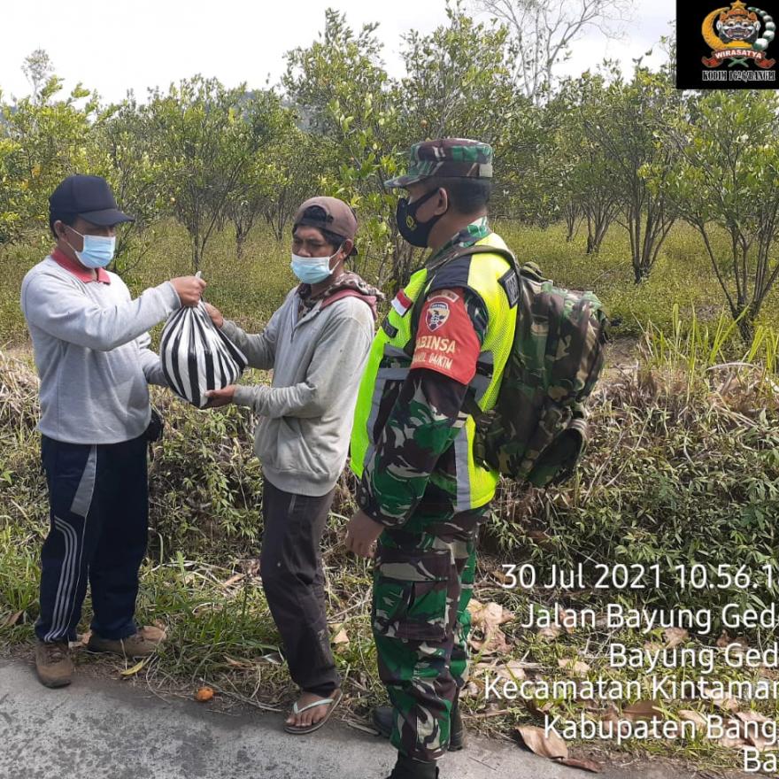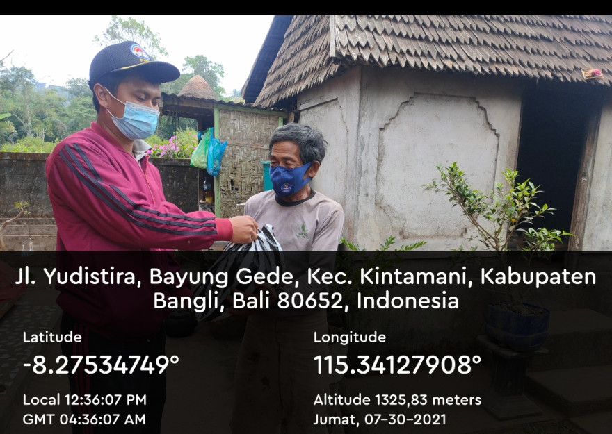 Penyaluran Bantuan Sembako dari KODIM 1626/Bangli yang diserahkan langsung oleh Langsung BABINSA Bayunggede bersama Aparat Desa.