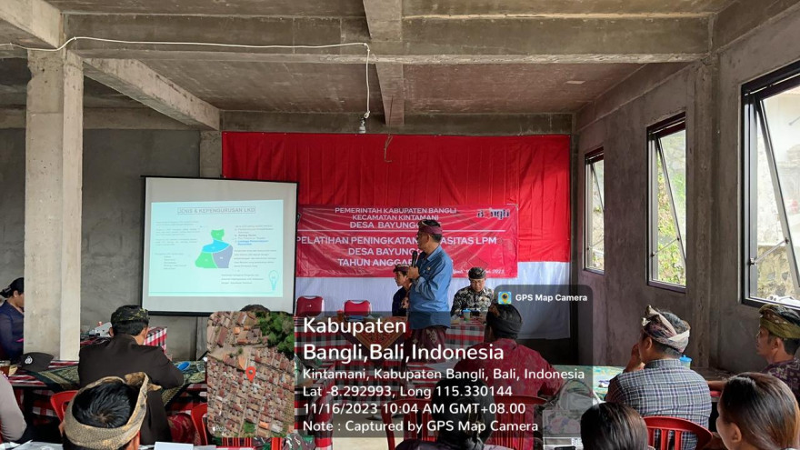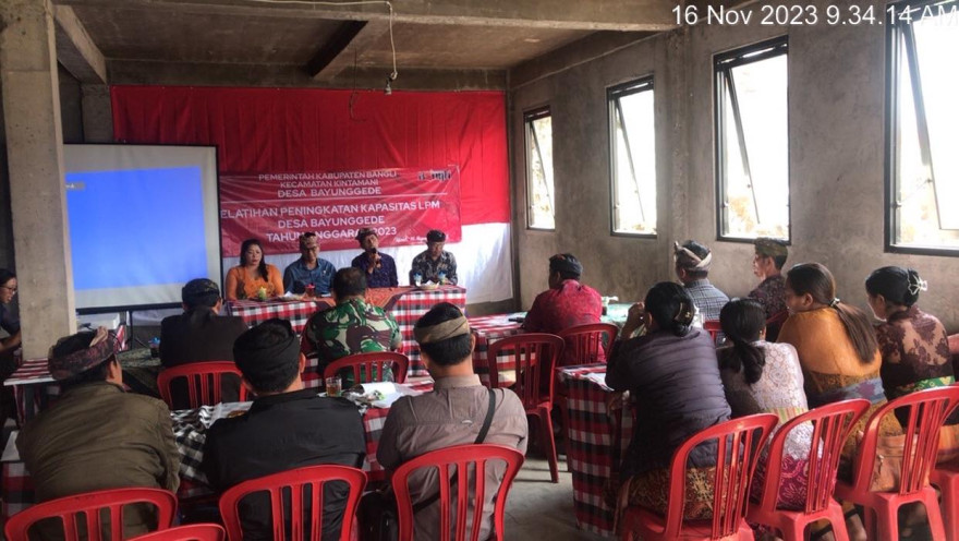 di hadiri oleh Perbekel Desa Bayunggede, Ketua BPD, Ketua Lpm, Kelian Br. Dinas Bayunggede serta Narasumber dari Kecamatan pada Hari/Tgl : Kamis, 16 Nopember 2023