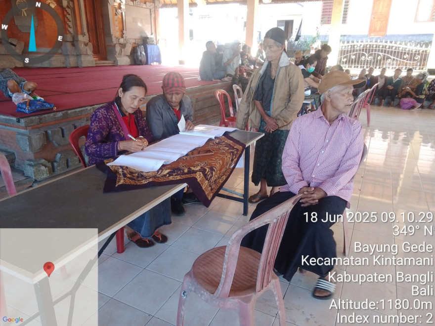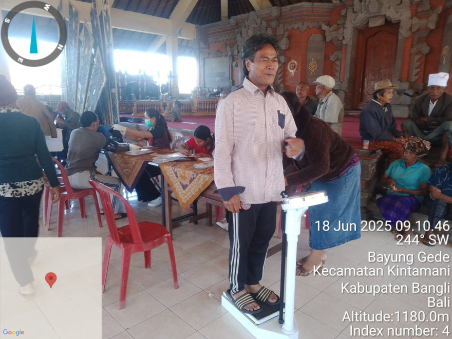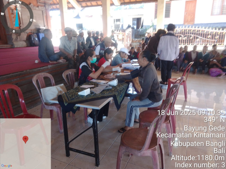 Bayung Gede, 18 Juni 2025 — Kegiatan Posyandu Lansia kembali dilaksanakan di Balai Banjar Desa Bayung Gede, Kecamatan Kintamani, Kabupaten Bangli. Kegiatan ini berlangsung pada hari Rabu pagi dan dihadiri oleh sejumlah lansia dari desa setempat.