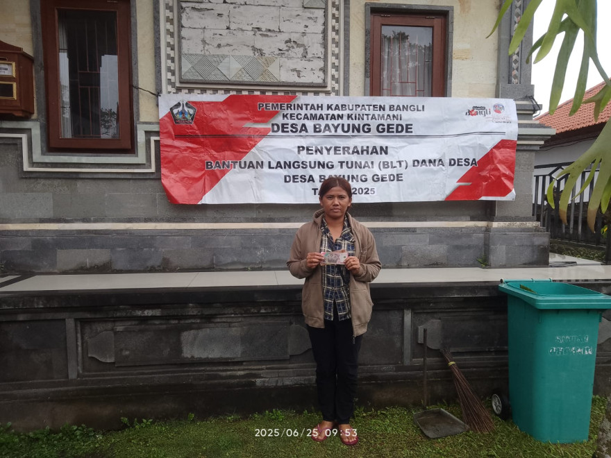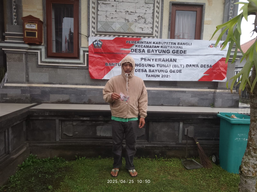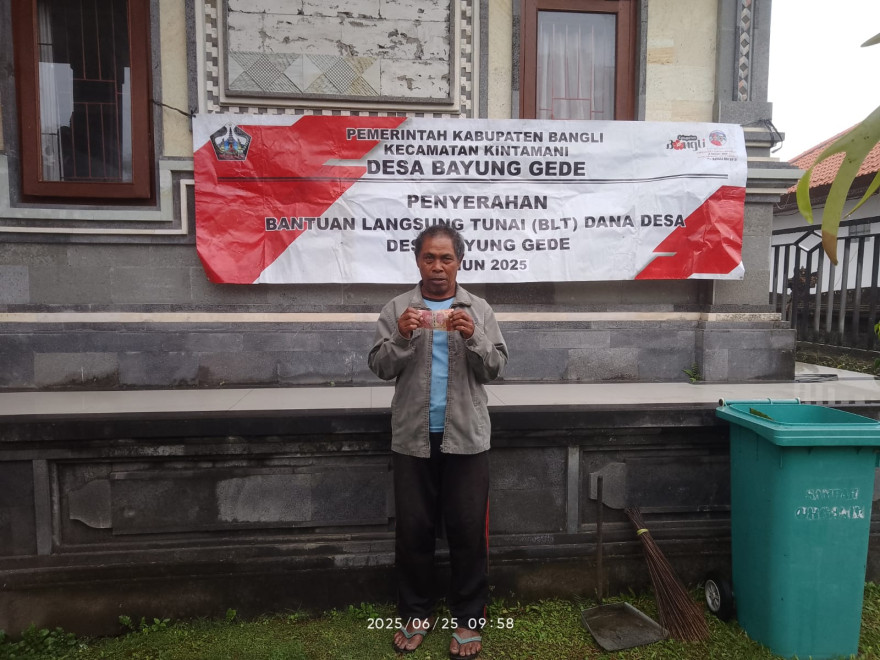 Bayung Gede, 25 Juni 2025 — Pemerintah Desa Bayung Gede kembali melaksanakan kegiatan penyaluran Bantuan Langsung Tunai (BLT) Dana Desa untuk bulan Juni 2025. Kegiatan ini dilaksanakan di kantor desa dengan dihadiri oleh para penerima manfaat dari berbagai dusun di wilayah Desa Bayung Gede.