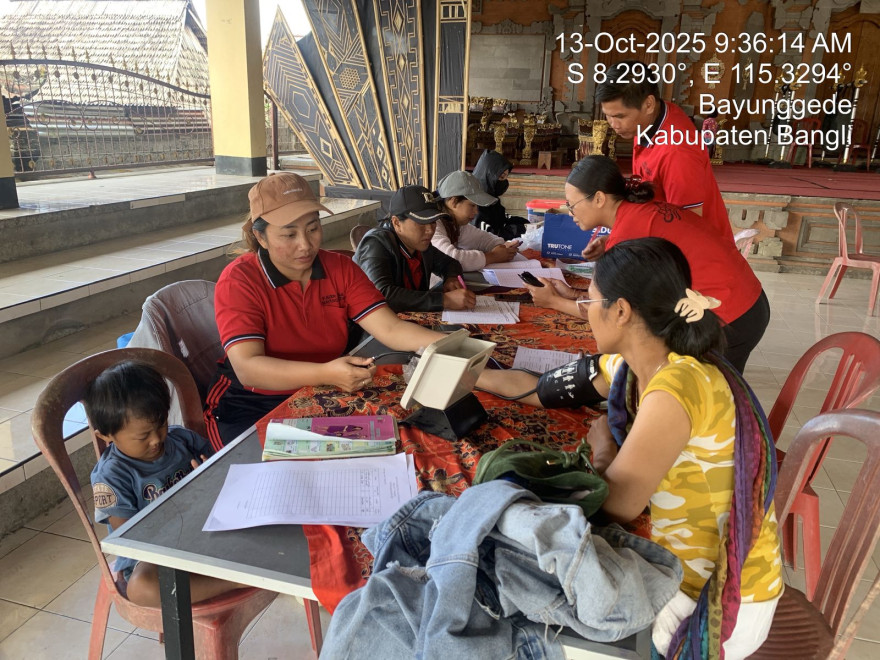 Bayung Gede – Senin, 13 Oktober 2025, Posyandu Ratna 1 bersama Posbindu melaksanakan kegiatan rutin pelayanan kesehatan di Balai Banjar Desa Bayung Gede. Kegiatan dimulai pukul 08.00 WITA dan dihadiri oleh ibu-ibu, balita, serta masyarakat umum yang antusias memanfaatkan layanan kesehatan gratis ini.