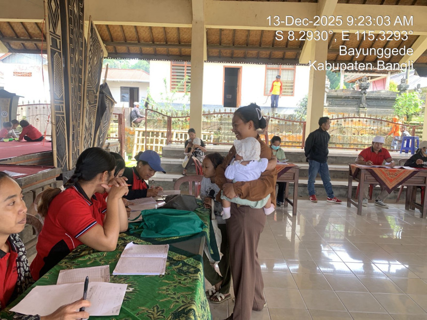 Kegitan posyandu Ratna 2, BKB Mawar 2 dan Posyandu Remaja dilaksanakan secara Bersamaan di Balai Banjar Desa Bayung Gede pada hari Sabtu 13 Desember 2025 yang dimulai dari pukul 08:00 sampai selesai