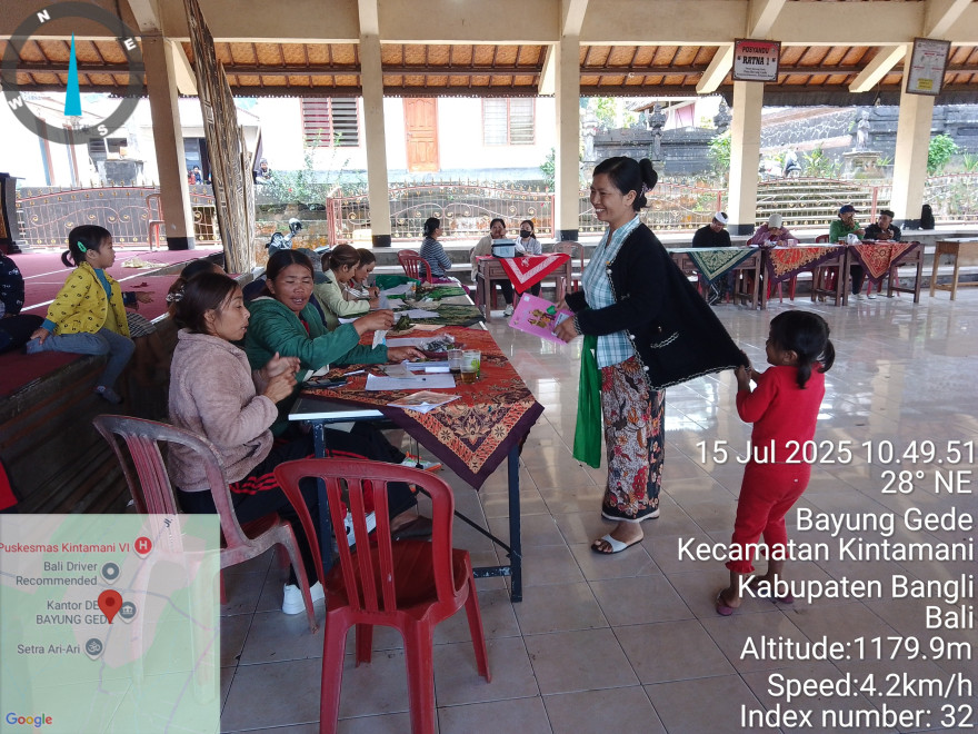 Bayung Gede, 15 Juli 2025 – Bertempat di Balai Banjar Desa Bayung Gede, Kecamatan Kintamani, Kabupaten Bangli, Selasa (15/07/2025) telah dilaksanakan kegiatan rutin Posyandu Ratna 2, BKB Mawar 2, dan Posbindu PTM yang berlangsung sejak pagi hari. Kegiatan ini mendapat antusias tinggi dari masyarakat setempat, baik dari kalangan orang tua balita maupun para lansia yang hadir untuk memeriksakan kesehatan mereka.