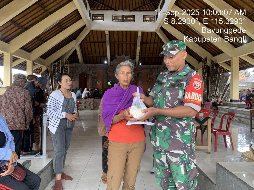 Selain pemeriksaan kesehatan, para lansia juga mendapatkan PMT (Pemberian Makanan Tambahan) berupa susu dan makanan ringan untuk menjaga asupan gizi. Kegiatan ini turut didukung oleh Babinsa Desa Bayung Gede yang membantu menyalurkan bantuan sembako bagi para lansia.