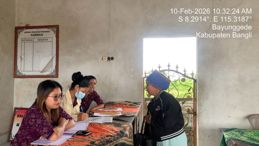 Kegiatan Posyandu Kamboja, BKB Ratna, dan Posbindu di Laksanakan secara Bersama pada hari selasa, 10 Pebruari 2026 di Balai Subak Pura Ulun Suwi Br, Dinas Peludu Desa Bayung Gede yang dimulai dari pukul 08:00 sampai selesai Untuk Bulan Pebruari Balita di Berikan Vitamin A dan Obat Cacing.