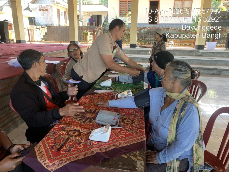 Sedangkan Posyandu Lansia dilaksanakan di Balai Banjar Desa Bayung Gede. Para Lansia yang hadir dalam kegiatan ini akan mendapatkan pelayanan kesehatan berupa pengukuran berat dan tinggi badan, pengukuran tekanan darah serta akan mendapatkan PMT.